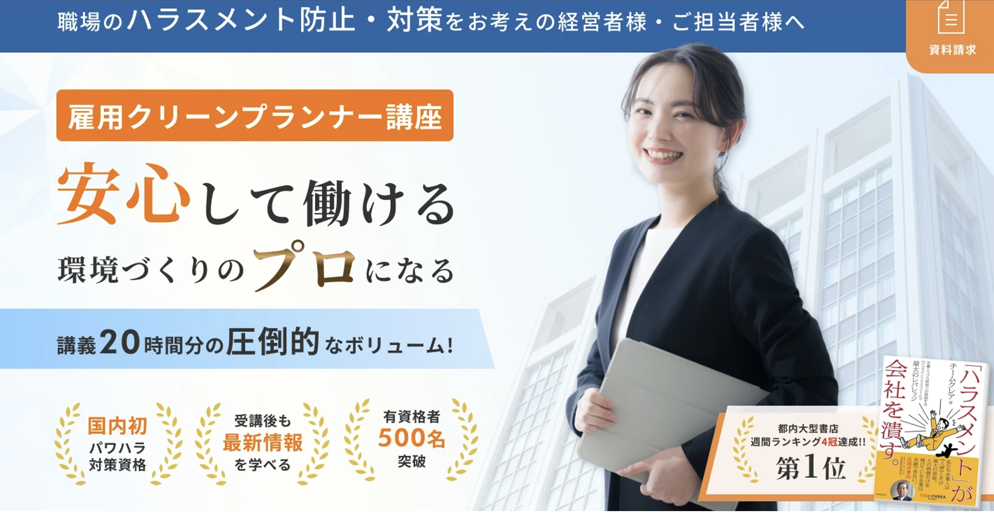 新しいランディングページを公開しました。新LPは、最新の情報を提供し、安心して働ける職場作りのプロフェッショナルを目指す資格の全貌を分かりやすく伝えています。
