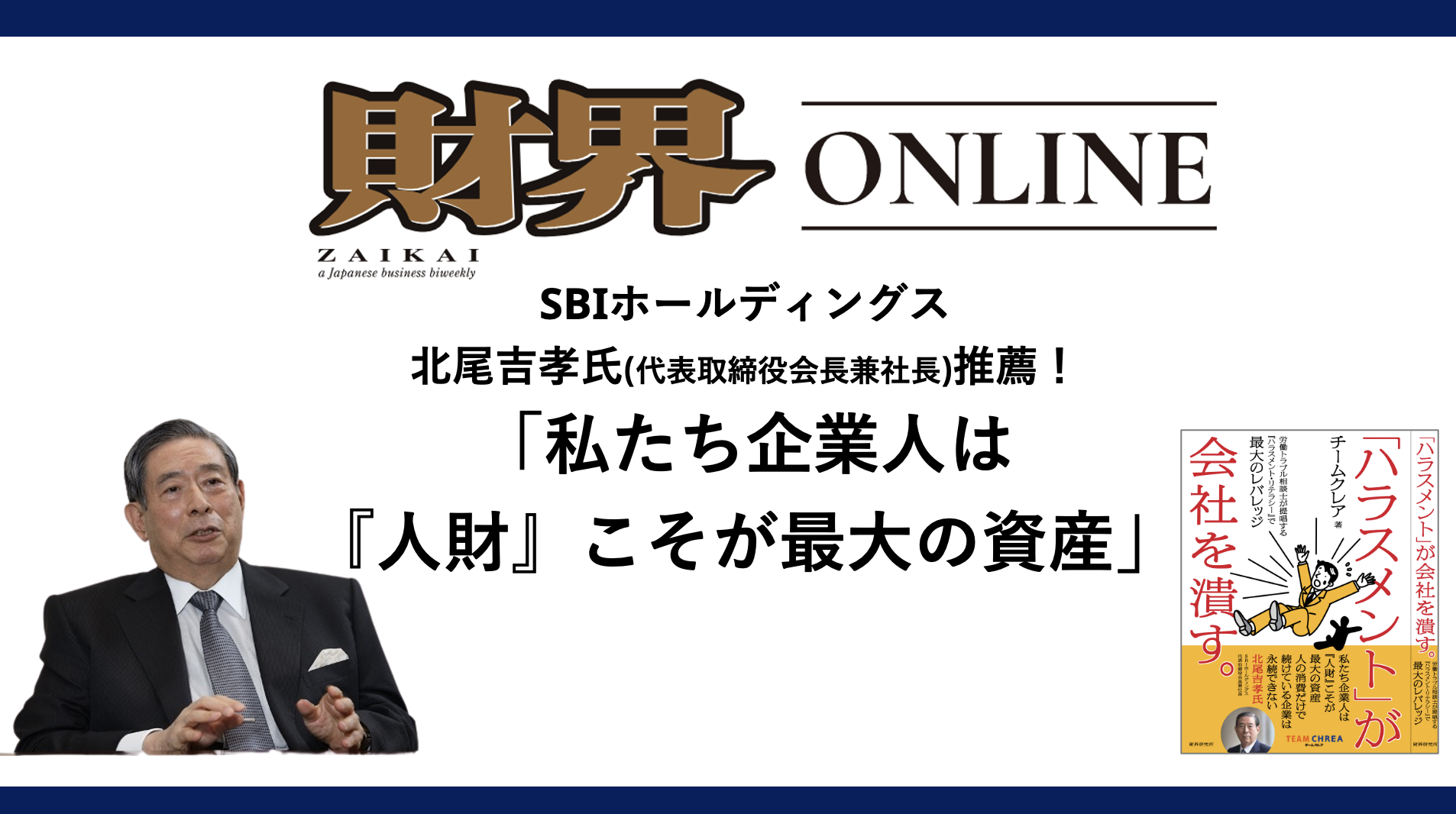 財界オンラインで出版本の紹介されました。SBIホールディングス代表取締役会長兼社長の北尾吉孝氏に帯の寄稿と推薦をいただきました。